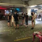 The Play Sphere ist ein musikalisch-performatives Tanzspiel. Zuschauer werden zu SpielerInnen und tänzeln über ein am Boden markiertes Spielfeld um einen Dirigenten in der Mitte. Begleitet wird das Spiel von live Musik.